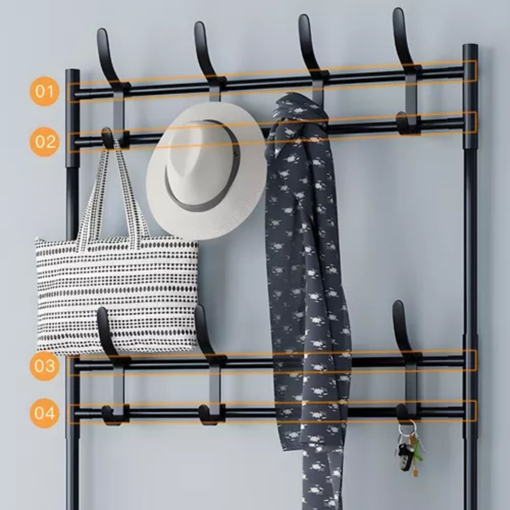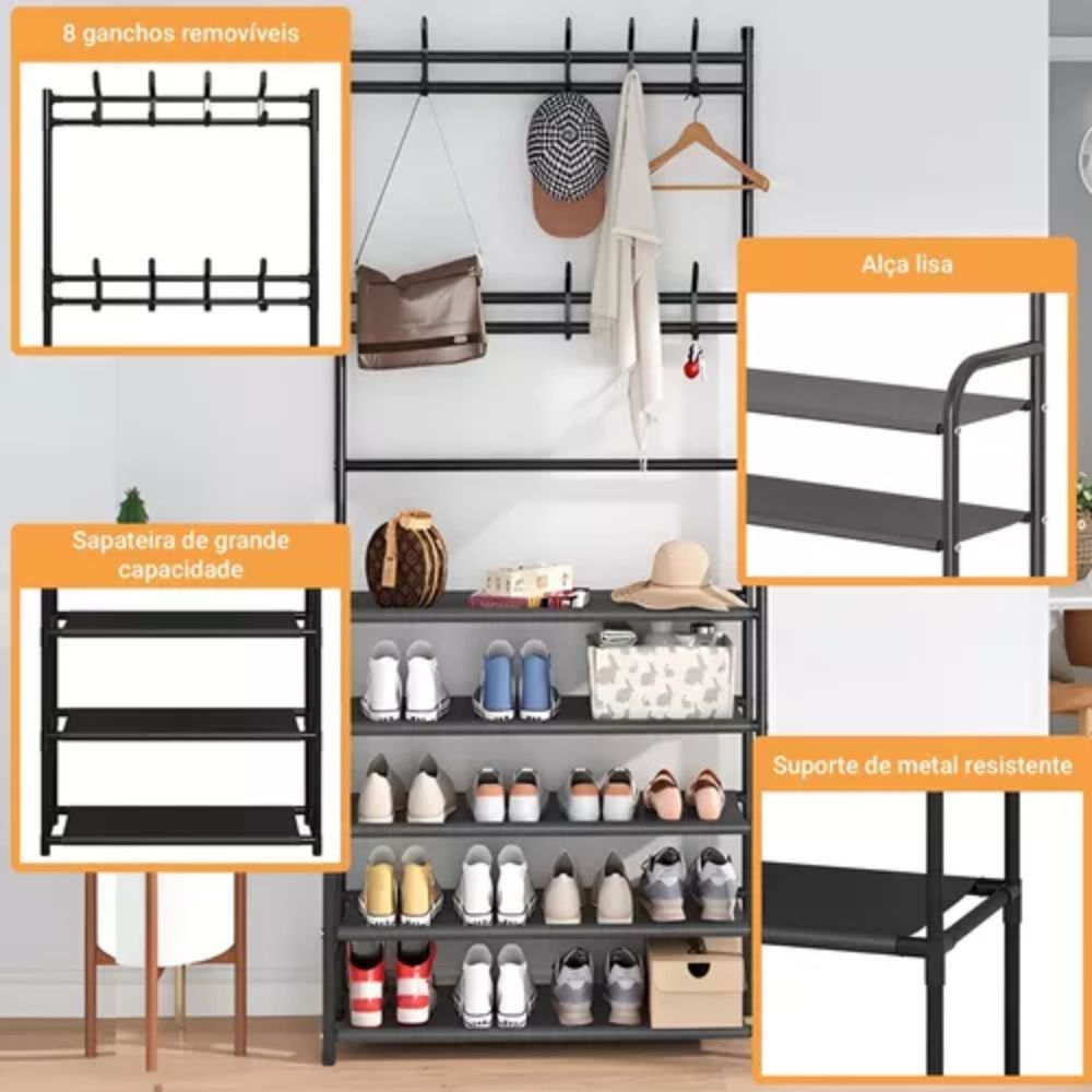 Otimize o espaço de armazenamento em sua casa com o Cabide e Sapateira 2 em 1, equipado com 4 níveis e 8 ganchos removíveis. Este versátil organizador oferece praticidade e eficiência para guardar uma variedade de itens, desde roupas até acessórios, de forma organizada e acessível.