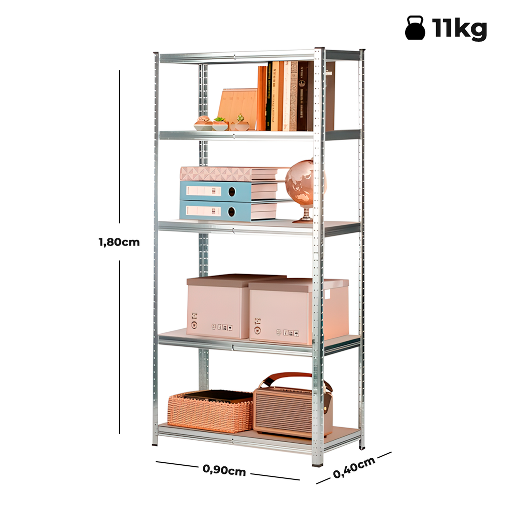 Seu design versátil permite que as prateleiras sejam ajustadas em altura para acomodar diferentes tipos de objetos. Além disso, a estrutura pode ser separada em duas estantes menores de 90 cm cada, proporcionando ainda mais flexibilidade para seu uso.