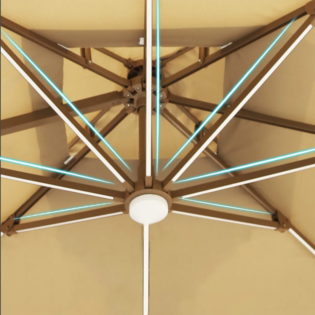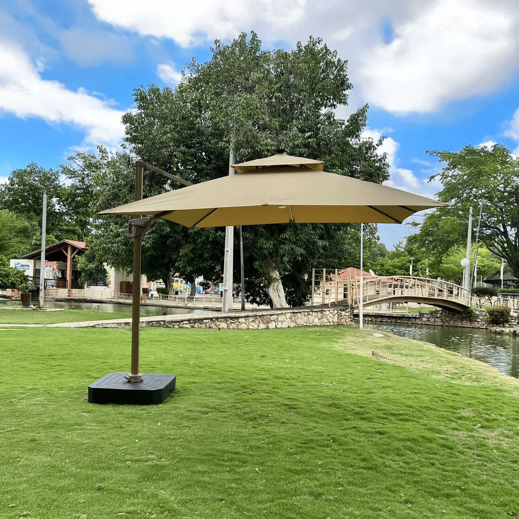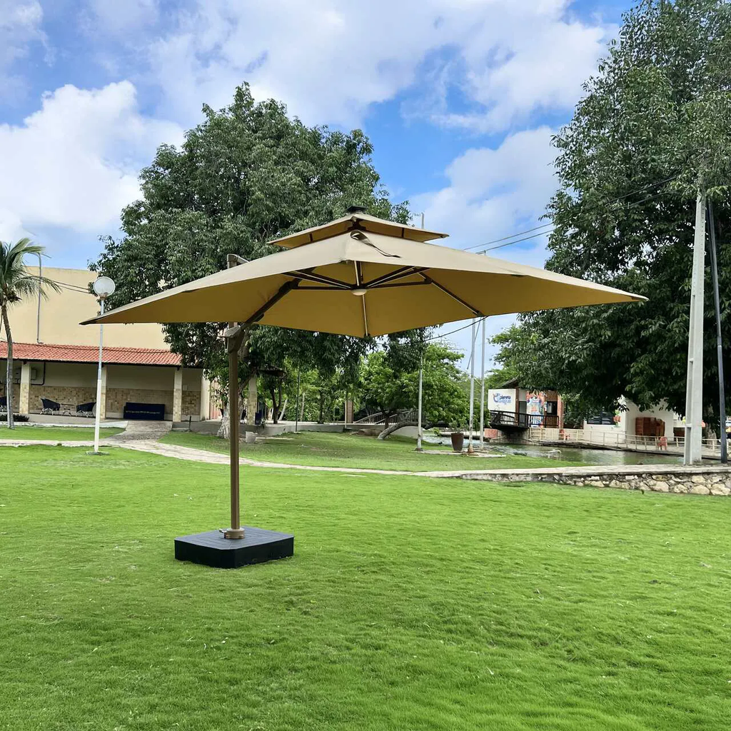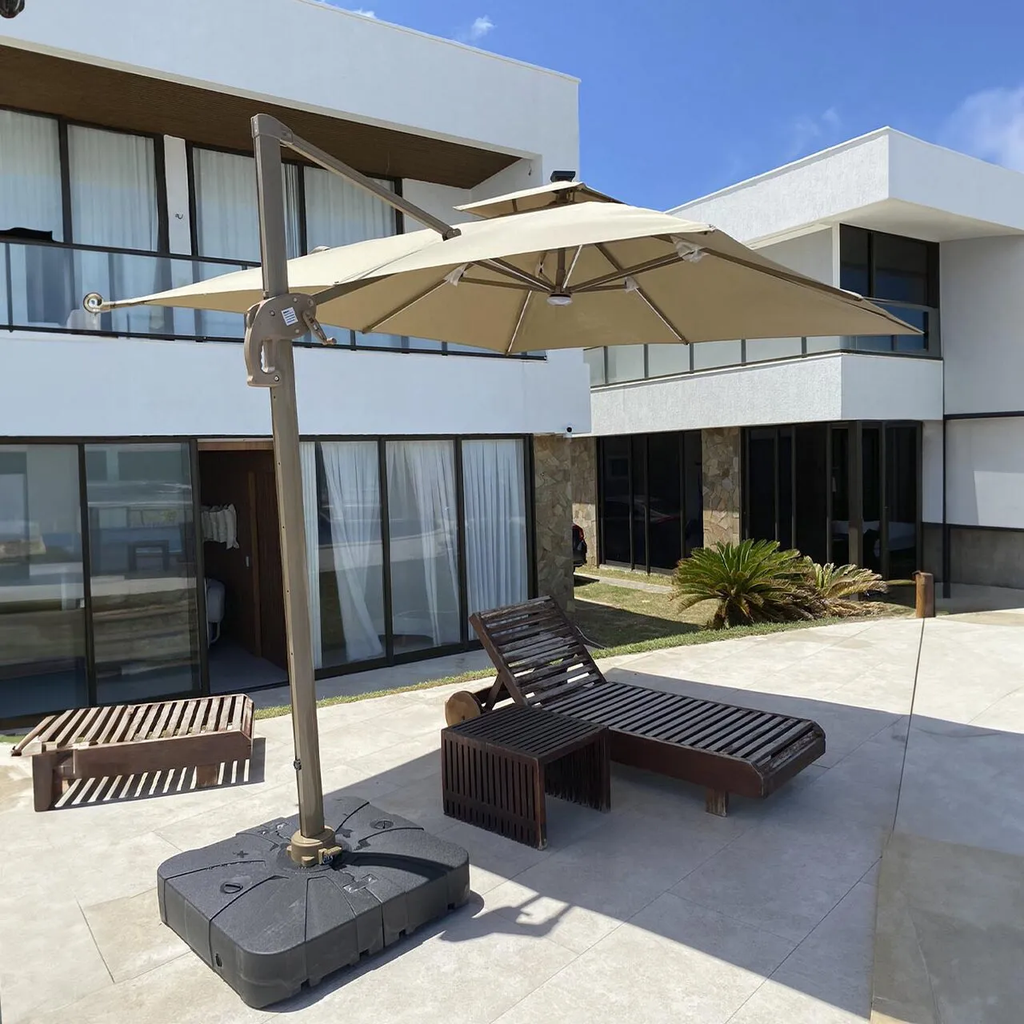 O Ombrelone Guarda Sol Gold Led Alumínio 3,0 x 3,0 C/ Base em 100 L é a escolha ideal para quem busca proteção solar premium aliada a um design moderno e elegante.