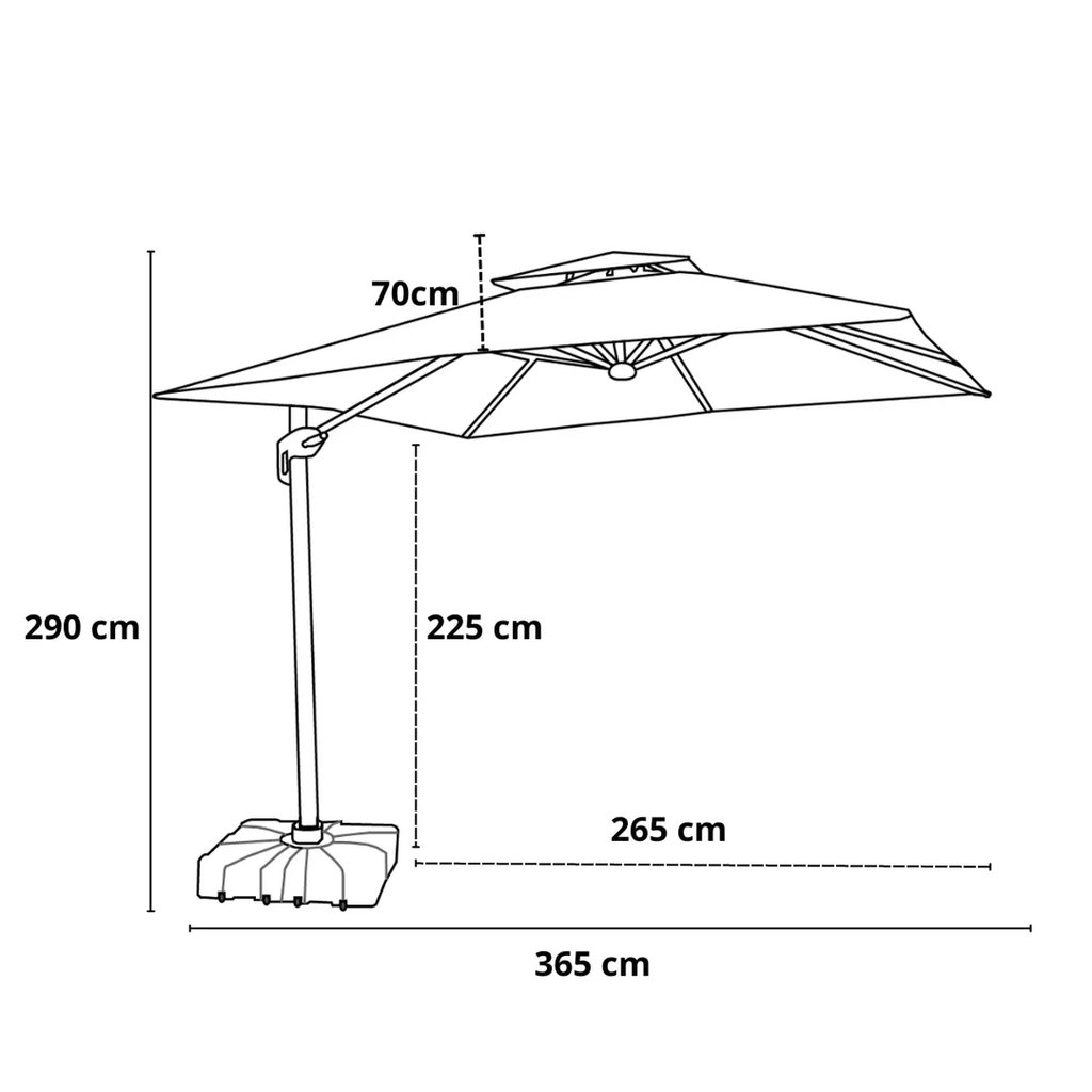 O ombrelone pode ser inclinado? Sim! Ele tem inclinação regulável e também pode girar 360°, garantindo sombra onde você precisar.