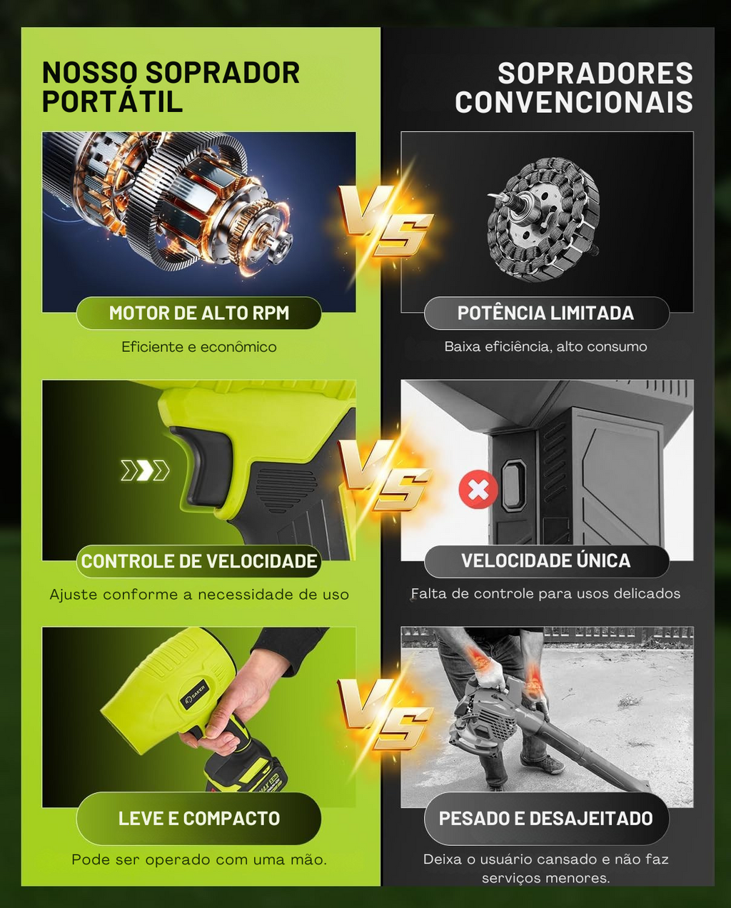 🔋 Velocidade Ajustável • 2 Baterias Recarregáveis • Leve, Versátil e Super Potente