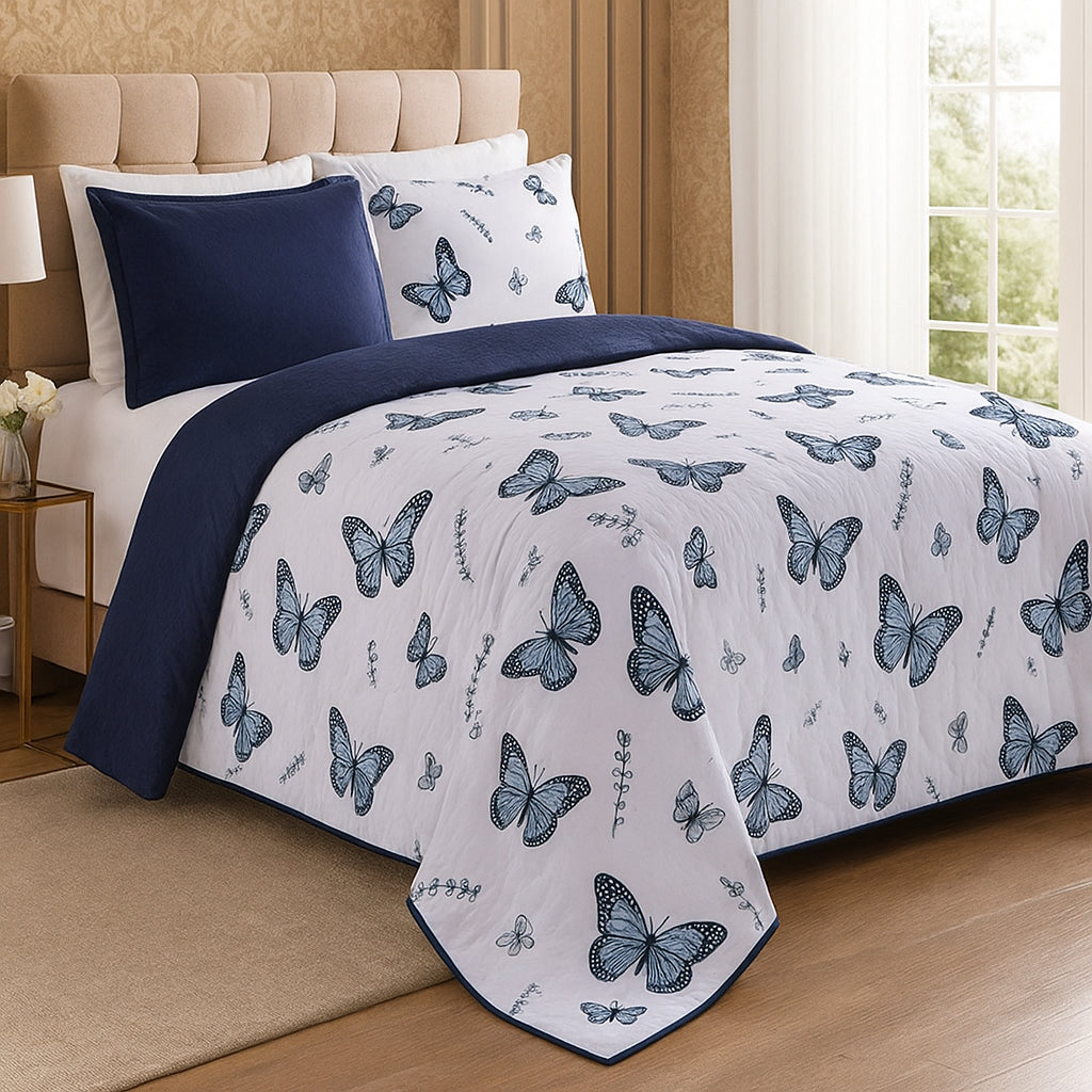 A estampa delicada de borboletas traz a leveza da natureza para o seu quarto, deixando o ambiente mais harmonioso e cheio de vida.