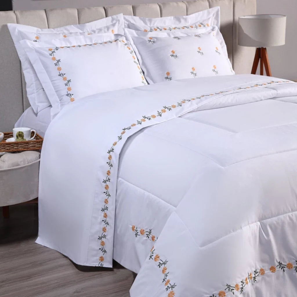 Feito em Percal Puro Algodão, ele tem aquele toque suave e fresquinho que transforma suas noites em momentos de puro descanso e carinho.